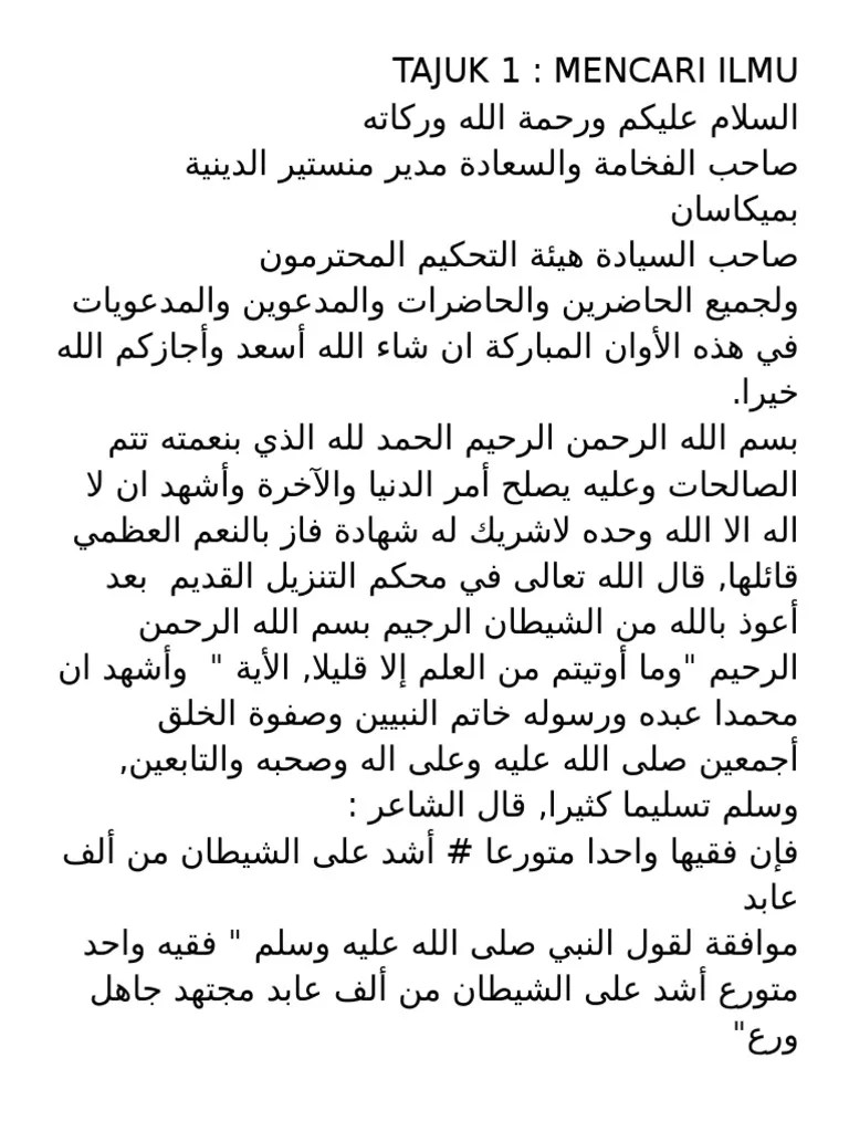 Teks Syarahan Bahasa Arab Pdf : Top Pdf Pedoman Teknis Lomba Pidato Bahasa Arab 123dok Com. 2.1.1 membaca teks syarahan dan pidato dengan sebutan dan intonasi yang betul, nada yang 5. Apr 27, 2020 · download pdf share related publications. Era kesultanan melaka menyaksikan pengaruh islam yang kuat dalam bahasa melayu, dengan kemasukan banyak perkataan pinjaman dari bahasa arab dan parsi. Jika anda mendapat perintah untuk bercerita atau mengarang mengenai waktu alias jam, anda bisa mengganti nama hasan dengan nama … Perkembangan ini menghasilkan bahasa melayu klasik yang kemudiannya menjadi asas kepada bahasa melayu moden yang digunakan dengan meluas hari ini di brunei, indonesia, malaysia, singapura dan.